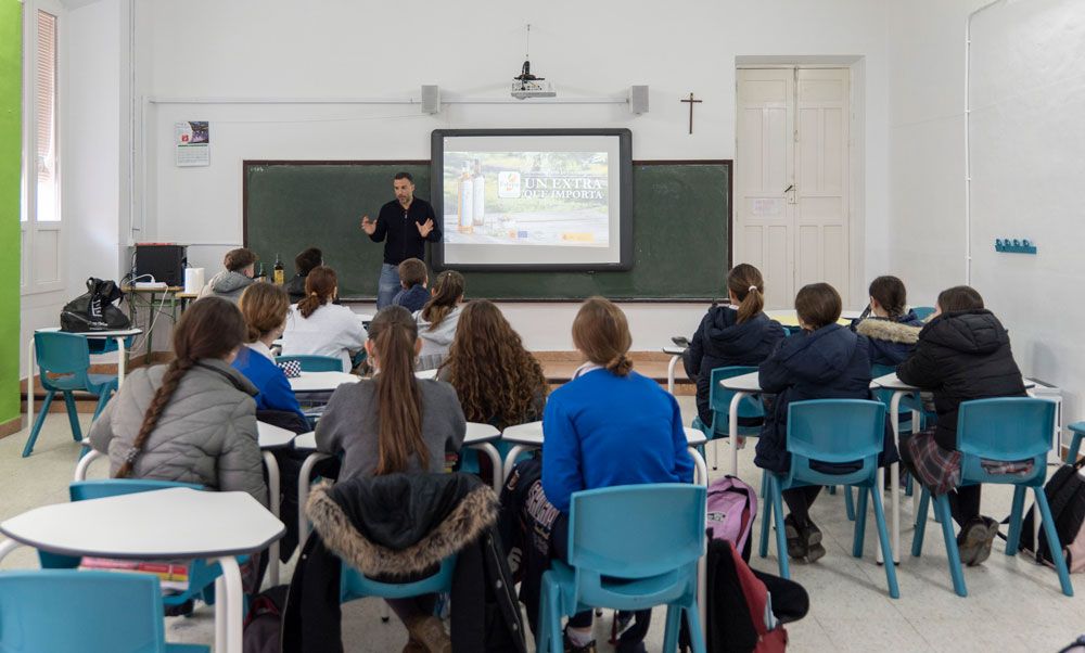 En el día de ayer los alumnos del Colegio Compañía de María, de la localidad cordobesa de Puente Genil, participaron en una cata guiada de diferentes aceites de oliva virgen extra, en la que aprendieron a reconocer y diferenciar los atributos y matices de un buen AOVE.