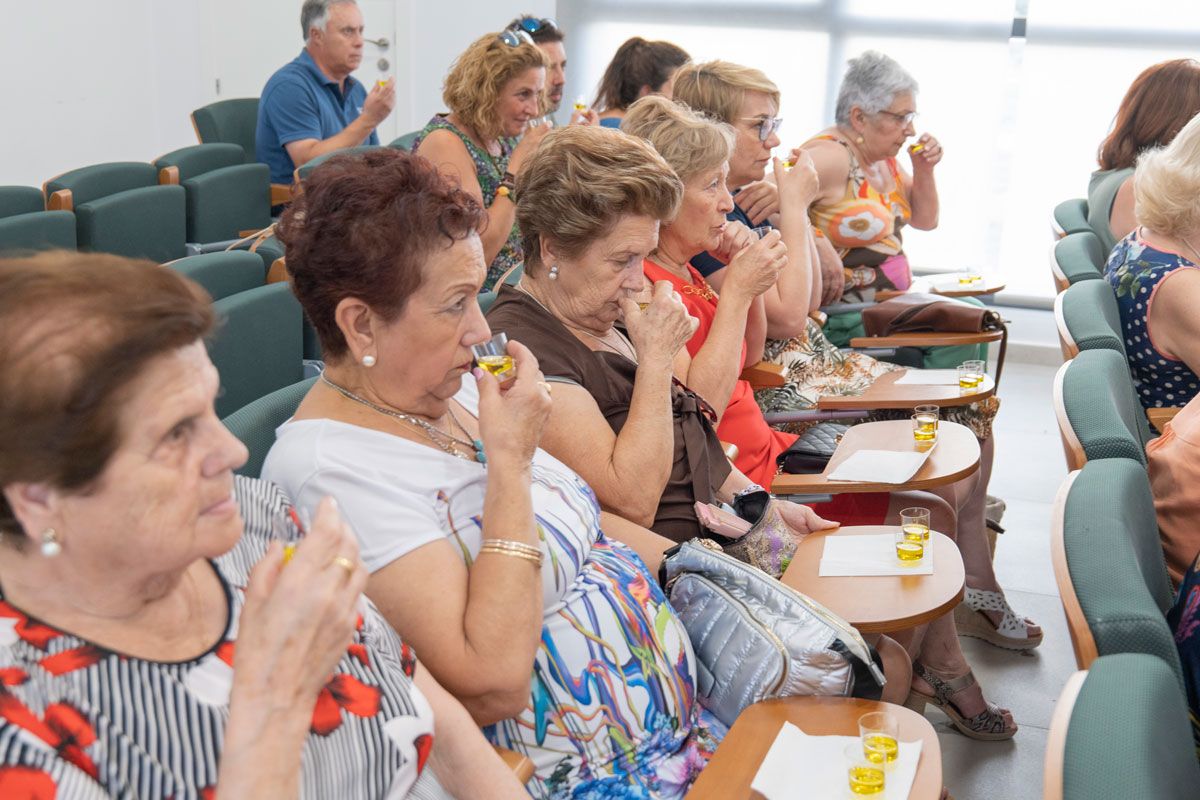 En esta primera merienda divulgatvia, Moisés Caballero se centró en las propiedades organolépticas que hacen diferente a un aceite de oliva virgen extra. Frutado, amargo y picante, fueros algunas de las características que descubrieron los asistentes.