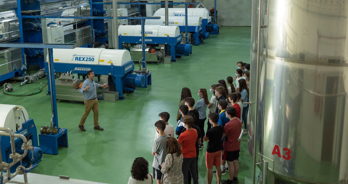 Moisés Caballero, Secretario de la Denominación de Origen Estepa, ha sido el encargado de explicar cada uno de los pasos que sigue la aceituna hasta convertirse en aceite de oliva virgen extra. A pesar de que la campaña no está actualmente en marcha, los alumnos han tenido la posibilidad de ver en primera persona toda la maquinaria que compone una almazara y descubrir que existen muchos matices a tener en cuenta a la hora de elaborar un gran aceite de oliva virgen extra.